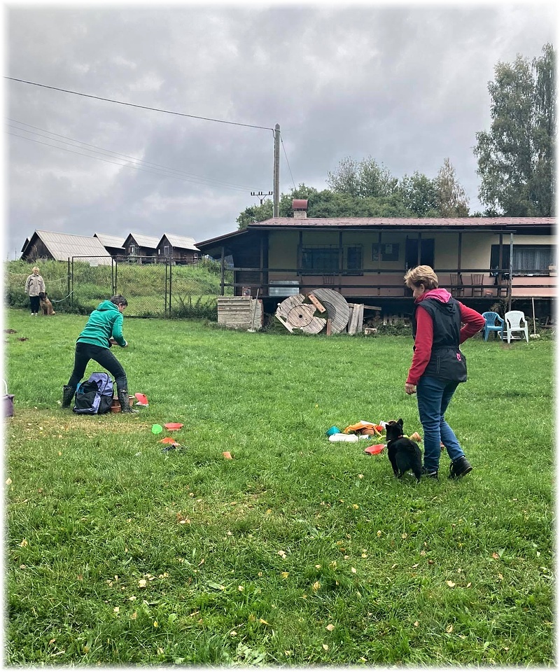 Ve dnech 18.-19.9.2021 jsem se spolu s kamarádkami Irčou, Janou, Monikou, Aničkou a Týnou zúčastnila semináře noseworku, který se konal společně se seminářem dogdancingu v ZKO Stará Paka. Původně se mi na akci moc nechtělo, ale jsem toho názoru, že člověk má rozšiřovat obzory sobě i svým čtyřnohým parťákům a tak jsme nakonec zbalila sebe, Carču a vyjela. Ačkoli jsem se na rychlo snažila den před odjezdem shlédnout na PC pár volně dostupných videí, stejně jsme si na místě připadala dost neohrabaně. S noseworkem jsem se setkala „naživo“ poprvé a i Carča nejdříve nechápala, co po ní vlastně chci. Nácviku jsme se po oba dny věnovala dost, uznávám, že je tato činnost pro psy zajímavá a fandím těm, kteří se jí věnují. Počasí nám sice moc nepřálo, ale musím říci, že jsme si akci v pěti skvěle užili. Holky, moc děkuji .-).