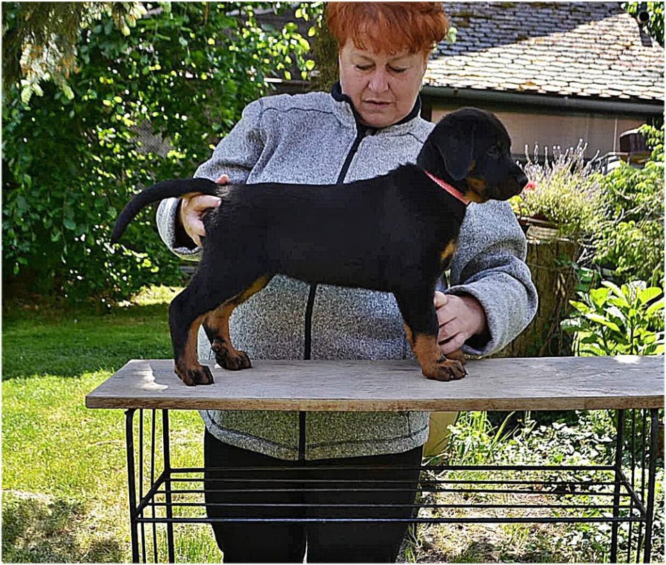 Asi rok po odchodu mojí poslední beauceronky Alby (r.2015) jsem byla přesvědčena, že si ještě jednu beauceronku určitě časem pořídím. Pravdou ovšem je, že jsem již pár let svoje plány související s pořízením bosíka, před kamarády a známými, které zajímalo, jestli nějaký ten bosík bude, pravidelně oddalovala se slovy "až příští rok" a dál na beauceronní akce občas jezdila jen jako divák. Poslední dobou jsem si ovšem začala přiznávat, že čas a síly ubývají a tak holanďanka Carča bude mým posledním psem velkého plemene. Nebýt kamarádky Dáša Černá , která mne oslovila s návrhem pořízení fenky do spoluvlastnictví, pravděpodobně bych opravdu už zůstala bez své "srdeční záležitosti", kterou pro mne beauceron, jako plemeno, nepochybně je. Po mém krátkém zvážení padl souhlas a poté už vše vzalo rychlý spád - krytí, březost, narozená štěňátka, prozatímní výběr fenky podle fotek a .... byl tu termín odběru. Snad nikdy v životě jsem stejnou otázku nepoložila a neslyšela tolikrát, jako předešlé dva dny - "TAK ČERVENÁ NEBO RŮŽOVÁ"? mi v uších bude znít opravdu ještě dlouho a možná nejen mě, viď Dáša Černá ? Výběr mezi exterierově vyrovnanými štěňaty byl opravdu těžký, ale zvládli jsme ho. V sobotu 28.5.2022 se moje smečka rozrostla o krásnou fenku beaucerona Negru l´Ami Noir z Husovy tvrze, kterou bych doma neměla nebýt spolumajitelky Dáša Černá a chovatelské stanice Husova Tvrz . Moc děkuji za projevenou důvěru; a díky i všem, kteří mne v mém rozhodnutí podporovali Irena Šolinova, Jana Sedláčkova, Veronika Kylarová, Marcela Kinska.......