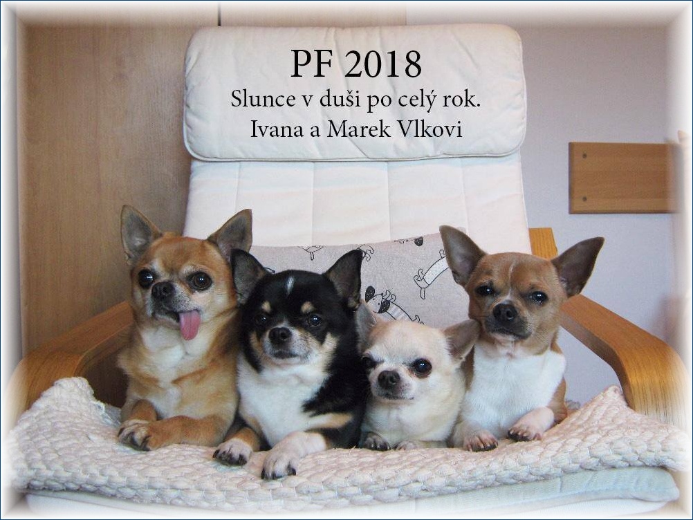 20.12.2017 Velkou radost mi udělalo první došlé PFko od majitelky tří pejsků z mých odchovů, z leva Darney (9,5 let), Coddy (téměř 11 let), Bewien (13 let) a jejich kámoš Timík. Ivčo, moc děkuji!